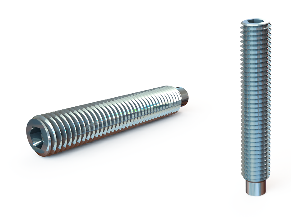 • DIN 915. Стержень с цапфой и углублением под шестигранный ключ. Изделие имеет резьбу М3-М24, может покрываться цинком.
