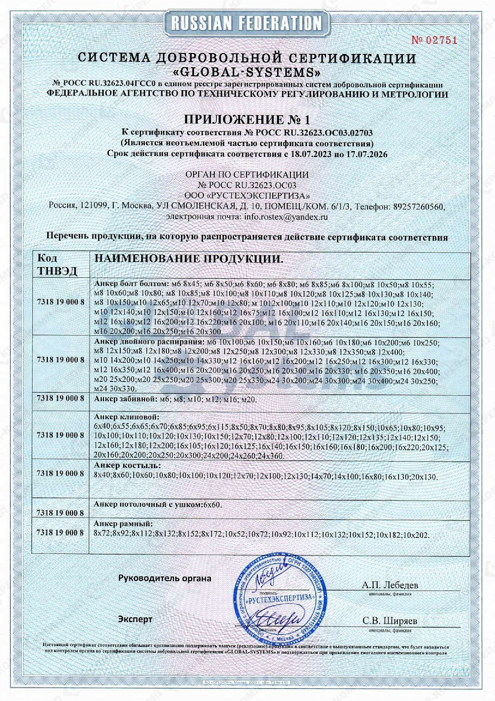 Анкер клиновой 12х100, желтый цинк (50шт)