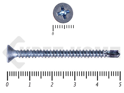К данному виду крепежа предъявляются особые требования, так как он применяется для крепления в сложном материале, таком как металл. Поэтому при производстве саморезов по металлу их наделяют специфической резьбой с маленьким расстоянием между витками, что конечно же помогает им врезаться в такой плотный материал как металл. Эта подгруппа является самой широкой во всей группе, так как она еще дополнительно делится на два вида: - Со сверлом
