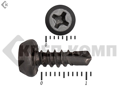 • Саморезы со сверловыми наконечниками РТ-3 (длиной 7 мм, рис. 2) или РТ-5 (длиной 15 мм, рис. 3) используются для того, чтобы крепить различные конструкции к толстолистовому металлу или металлопрокату без предварительного засверливания отверстий. Например, саморез-сверло по металлу с наконечником РТ-5 может при закручивании просверлить стальной лист толщиной до 12 мм.